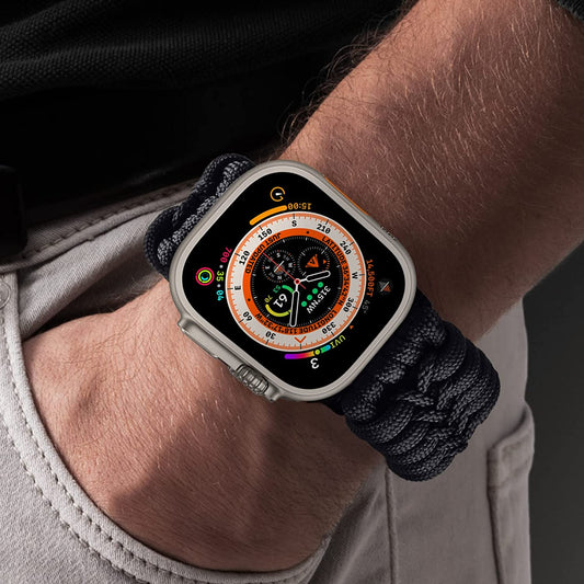V-MORO Compatible avec Apple Watch Band 49 mm, 44 mm, 45 mm, 42 mm, paracorde militaire robuste en nylon Sport Iwatch Ultra Bands Series 8 7 6 SE 5 4 3 2 1 Homme Femme, XL-Noir