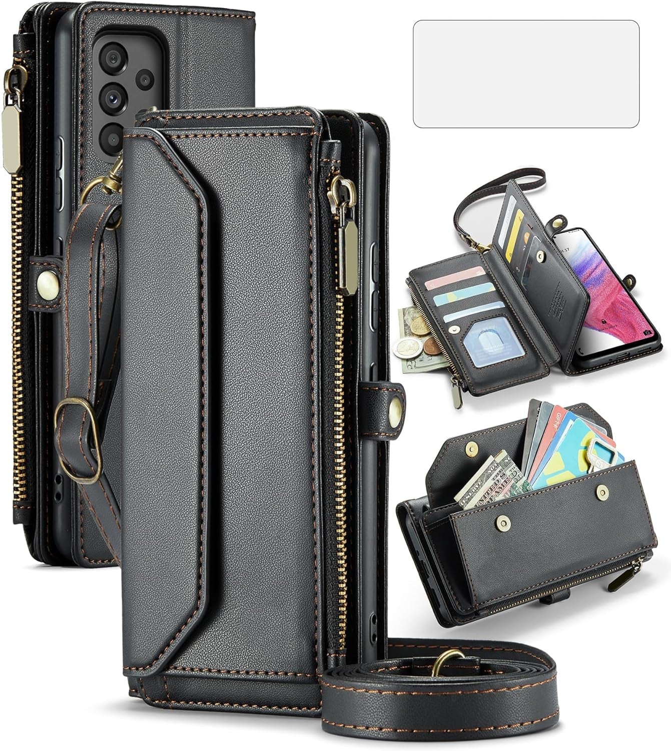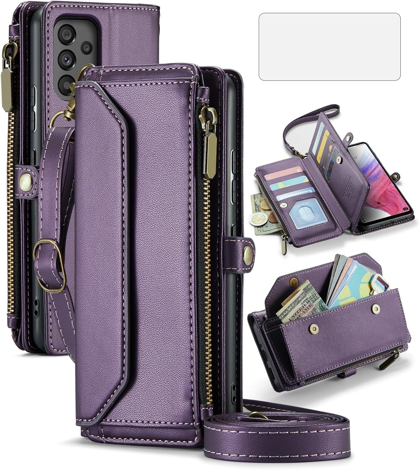 【Compatible Models】: Compatible with Samsung Galaxy A53 5G, NOT compatible with other devices.【Package includes】: We will send the phone case with 1 piece tempered glass screen protector + 1 detachable wrist strap + 1 detachable crossbody strap.You can adjust it to your preferred length, the crossbody strap can be taken off if you just need the case.【Premium Service】:Asuwish provides 24 hours professional & nice customer service. WARRANTY: *FREE REPLACEMENT* or *FULL REFUND* for defective products, if you have any doubts please feel free to contact us by mail,we will provide satisfied solutions to you.