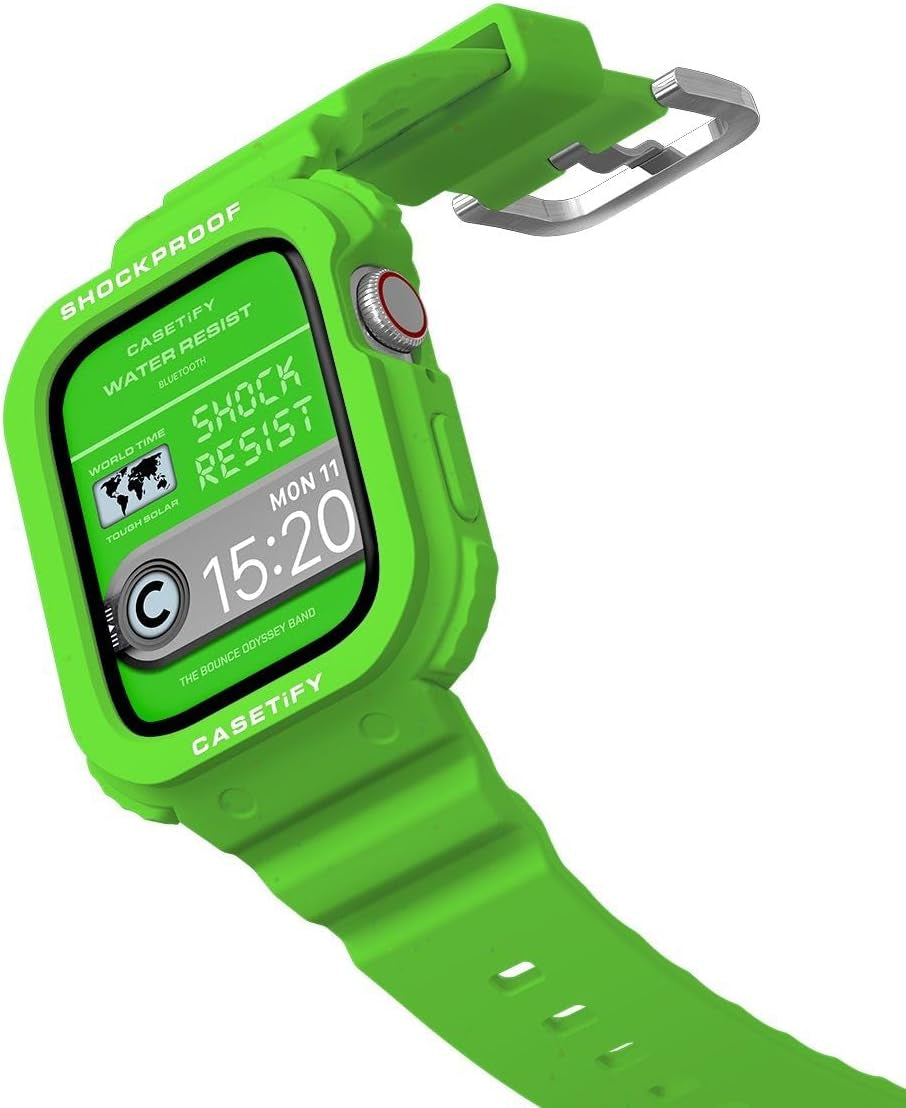 Explore in Style. Go the distance with Bounce Odyssey. Balancing protection and performance, made to be effortlessly stylish. Make a statement with Bounce Odyssey. Protection. Rugged Protection, Serious Style. Edge to edge protection and a grooved TPU watch band. 360 protection that’s designed for ultimate comfort. Sustainability. Made from Re/CASETiFY. We collect used phone cases in Re/CASETiFY collection bins, grind them and fuse them together to create Re/CASETiFY pellets.