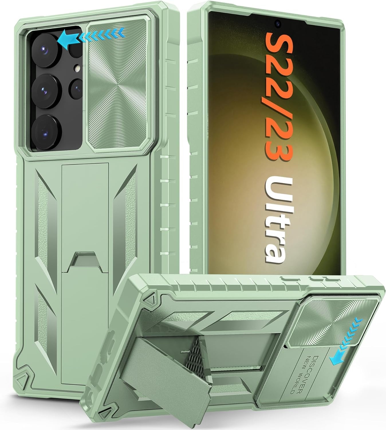 - Built-in Stable Kickstand: This Samsung Galaxy S23 Ultra/S22 Ultra case with hidden stand works perfectly both in vertical and horizontal stand angles.Convenient for reading,watching movies,playing games and face-time.Provides hands-free portrait and landscape viewing angles