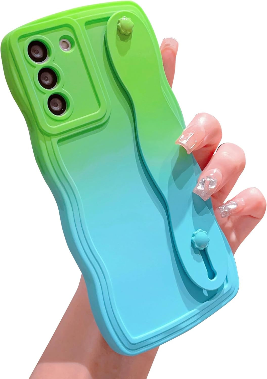 - 【Galaxy S22 Plus Case Curly Wavy】: Unique wave frame design, bring you comfortable hand-feeling when you hold this s22 plus phone case, non-slip. Wave groove fits perfectly with your fingers, so you can grip mobile phone firmly. High saturated bright gradient color always suprised me, not boring as usual solid color, make your phone looks more fashionable and outstanding, you can find your phone easily.